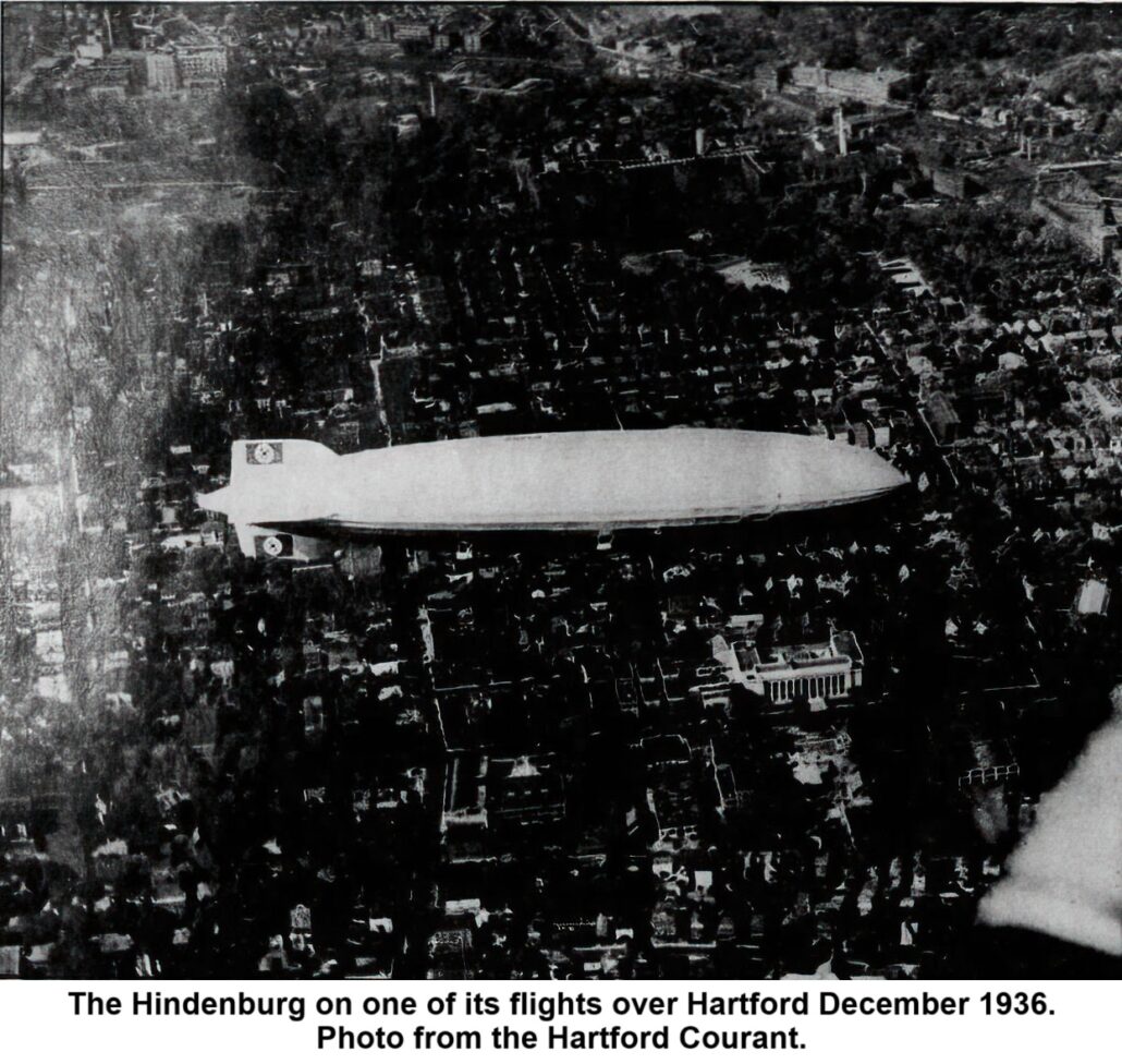 United Aircraft had its huge aircraft manufacturing facilities in East Hartford. On January 1, 1937, Frank Hawks flew a new speed plane into Rentscheler Field to demonstrate its incredible air speed. Coincidentally, or not, the Hindenburg flew over Renscheler Field at the same time. We don’t know the Hindenburg’s exact route from Hartford to Lakehurst, NJ in 1937, but we do know that the huge airship flew over Stratford during that visit to America.