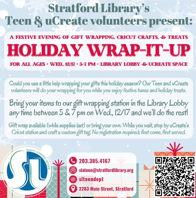 Help the Stratford Library collect gloves, scarves, and hats for adults, children, and teens in need. Items can be