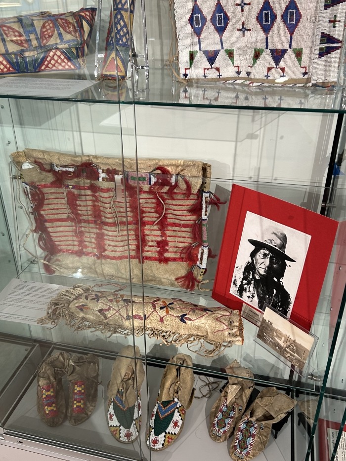 During her time at St. Elizabeth’s Boarding School, Hull was gifted with heirlooms purported to have belonged to Hunkpapa Lakota leader Sitting Bull. You will be able to view an Intricately beaded saddlebag, painted parfleche storage box, knife case, and moccasins.