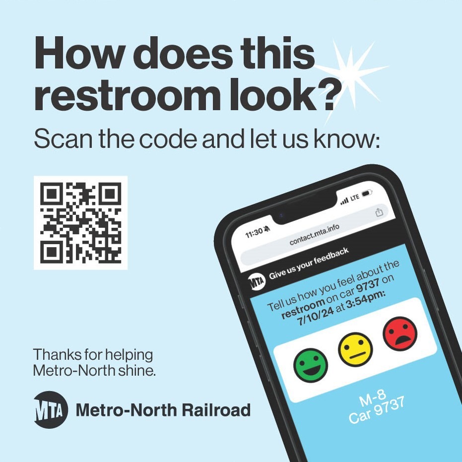 Let’s give Metro-North our kudos for some innovative tech to improve passenger comfort: a new QR code in each train bathroom to allow customers to report any problems.
