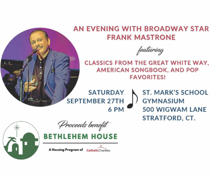 Frank Mastrone, who performs on Broadway, will provide musical entertainment with classics from the Great White Way, American songbook, and pop favorites. There will be raffles and door prizes!