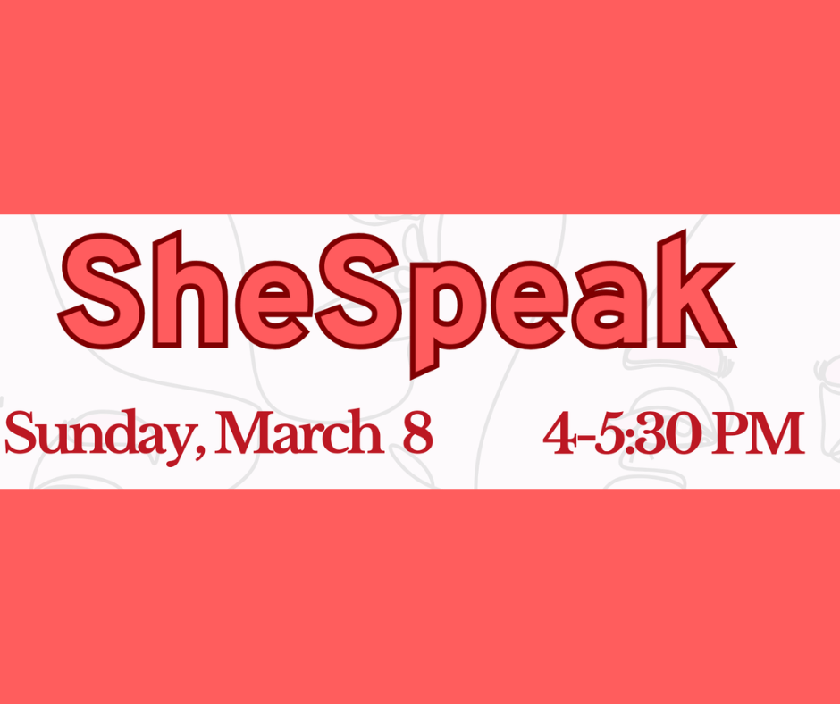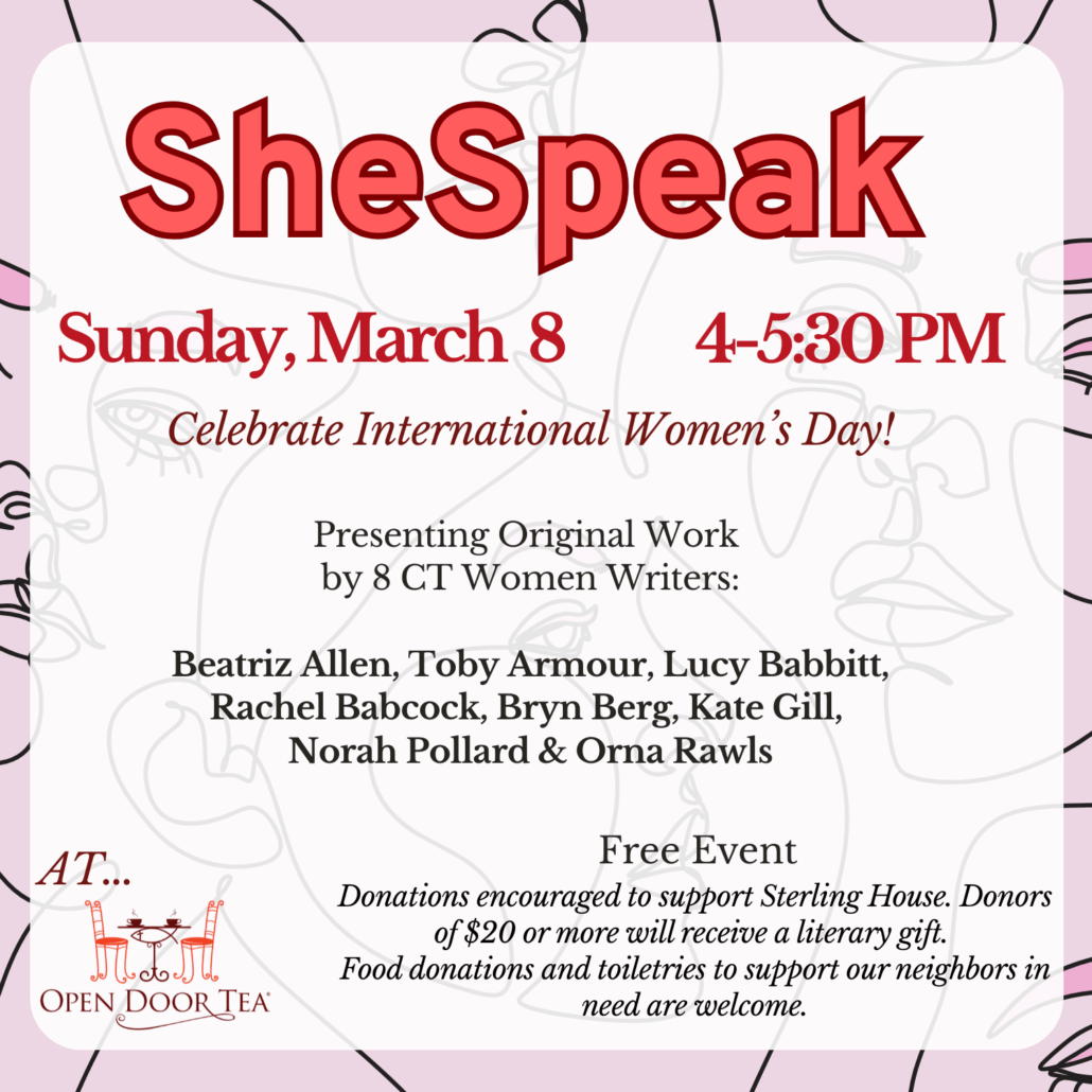 After a hiatus of a few years, SheSpeak will return to the Tea Room on Sunday, March 8th at 4 -5:30p.m. Open Door Tea is located at 3552 Main Street in Paradise Green.