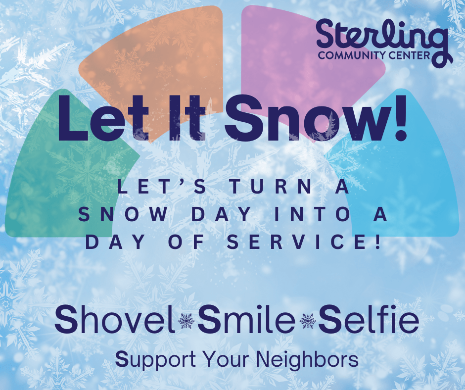 - Complete our Google Form and upload your photo HERE — or share it on social media and tag @SterlingCommunityCenter so we can celebrate and share your snowy service!