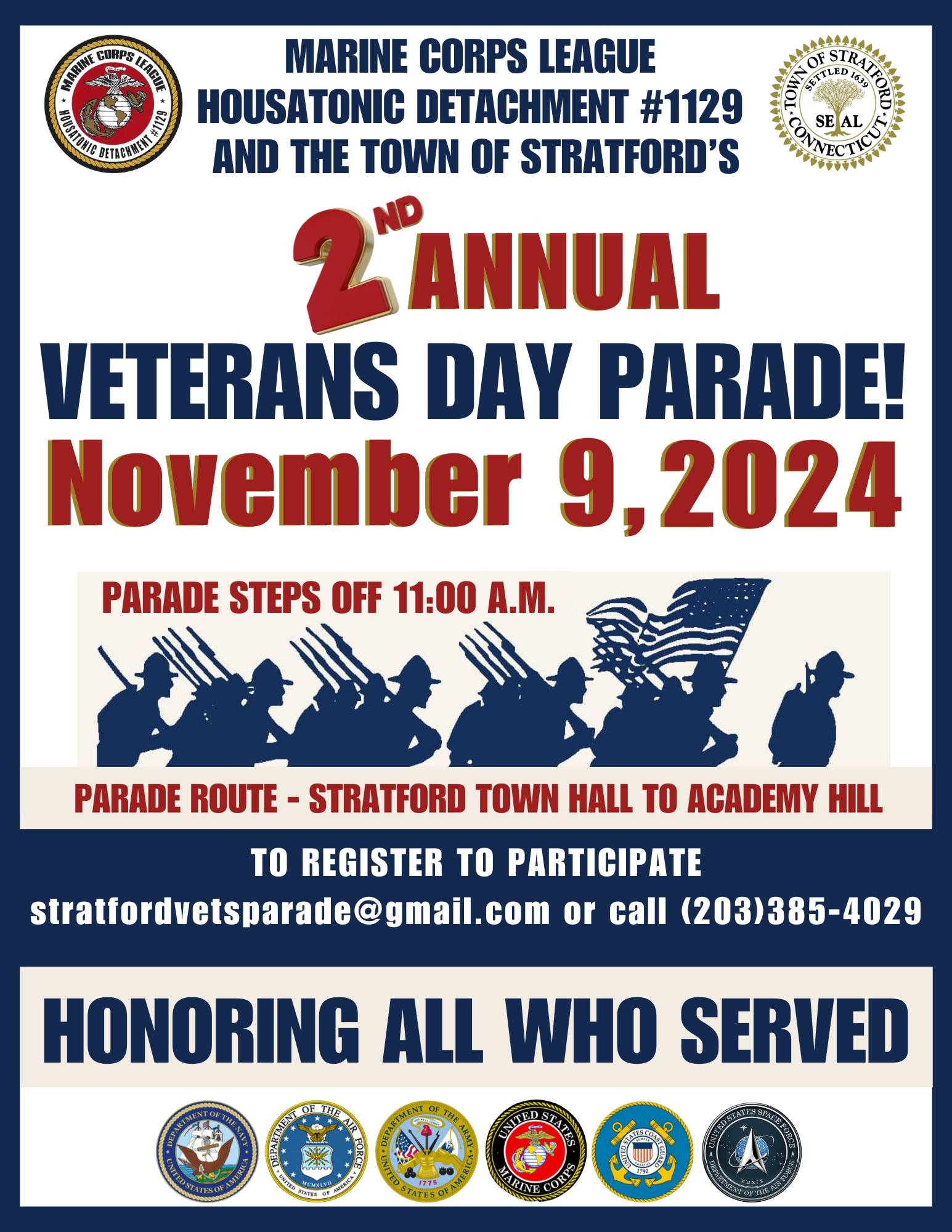 The Marine Corps League Housatonic Detachment #1129 and the Town of Stratford are pleased to announce the second annual Veterans Day Parade.
