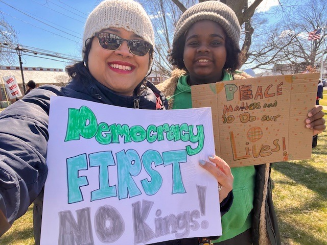 As Sonya said, and many others agreed, including Orna, Lera and Dinushka, “Saturday’s NO KINGS RALLY in Stratford was an opportunity to come together to express outrage about the violence committed by ICE against our neighbors. No Kings is a nationwide network organized as a coalition beginning in 2025, and this has been the third national day of action. It’s very important for visibility to show the current federal government that we are not okay with everything that is being done in our name, from attacks on trans people to the bombing of Iran. The range of issues is overwhelming for many of us, and we need to find strength in each other.”