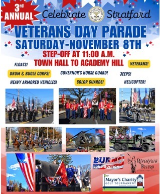 The well attended highlight for Stratford Veterans in November will be the 3rd Annual Veterans Day Parade, Saturday, November 8th.