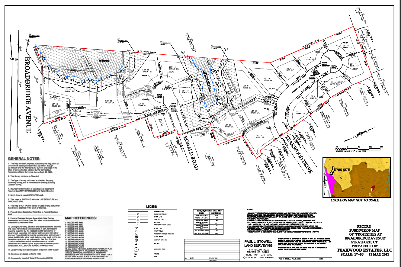 2023-20: nineteen (19) Lot Residential Subdivision. Address: North of Broadbridge Avenue, West of Ronald Road, West of Teakwood Drive, East of Ridgefield Drive. Assessor’s Reference: Map 20.13, Block 1, Lot 1. Applicant: Teakwood Estates LLC –