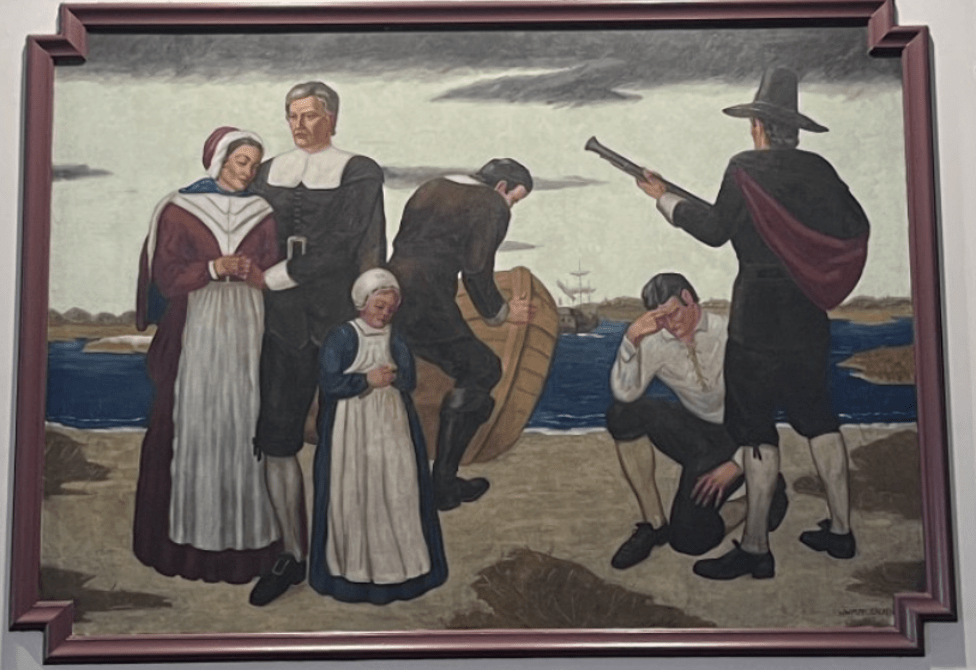 For the past two months, I’ve been sitting at the center of the Town Council chamber, looking out at colleagues, residents, and neighbors as we debate the business of Stratford. And behind us, watching over every vote, is the painting “Arrival of the Founders” created by William McCracken for the opening of Stratford’s “new” Town Hall in 1937.