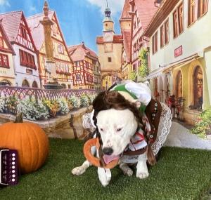 And then there is Oktoberfest. What could be more appropriate for Oktoberfest than a pretzel around your neck, a pumpkin, and an accordion? Dogs at Dog Central are dressed in appropriate costumes to reflect the season, photoshopped, and the photos sent to their owners to view.